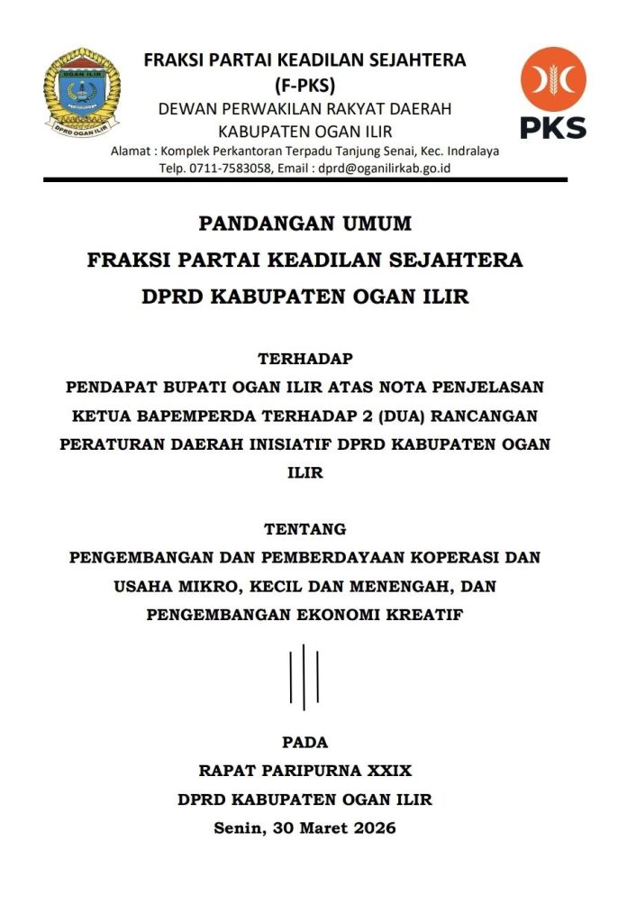 Demikian pandangan umum fraksi PKS DPRD Ogan Ilir yang di sampaikan sebagai bagian dari pertanggungjawaban publik kepada masyarakat Ogan Ilir.
